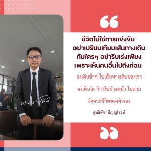 ชีวิตไม่ใช่การแข่งขัน อย่าเปรียบเทียบเส้นทางเดินกับใครๆ อย่ารีบเร่งเพียงเพราะเห็นคนอื่นไปถึงก่อน จงเดินช้าๆ ในเส้นทางเดินของเรา จงเติบโต ก้าวไปข้างหน้า ไปตามจังหวะชีวิตของตัวเอง#สุทธิชัย ปัญญโรจน์ #อาจารย์โทนี่